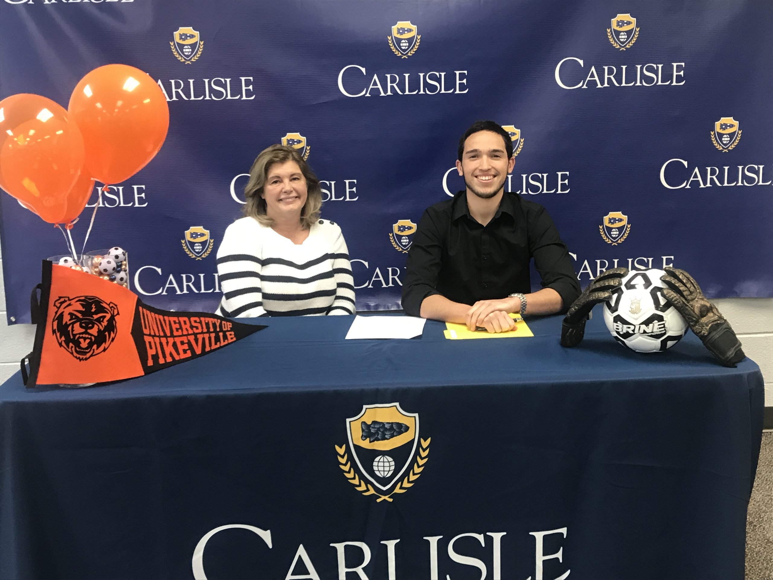 Administrators at Carlisle School created a virtual event so that seven distinguished student athletes would not miss the experience of their college signing day. The student-athletes and their parents were invited to the Carlisle Campus, where a table and photo background were set up, and props were on hand to represent the teams and school colors of each college the students would attend. Due to social-distancing guidelines, friends, extended family, faculty members, and media partners all participated in the event via Zoom. The signing event was also spaced out throughout the afternoon so that school staff could sanitize the signing room in between parties arriving.