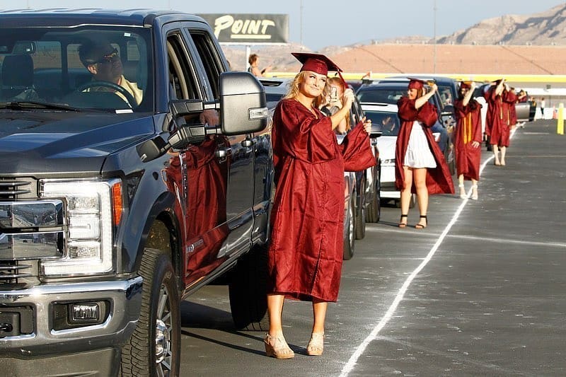 The Las Vegas Motor Speedway was the site for Faith Lutheran Middle School & High School’s graduation ceremony. Over 3,000 attendees spread out over the raceway, where students received their diplomas, along with a checkered flag, keepsake mask with Faith Lutheran’s logo on it and a graduation program. Graduates then took an approximately mile-long “victory lap” around the racetrack. They heard a graduation address — as well as remarks from the class valedictorian — via their car radios using the speedway’s low-power FM transmitter. Faith Lutheran CEO Stever Buuck said that after all the things the high school seniors missed out on this year, he hopes the graduation will be a “unique, memorable experience” they won’t forget.
