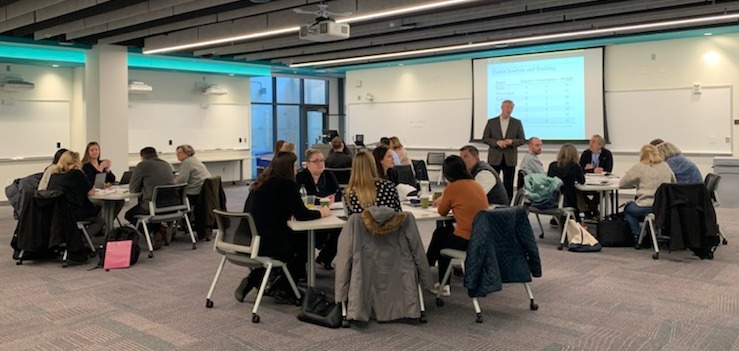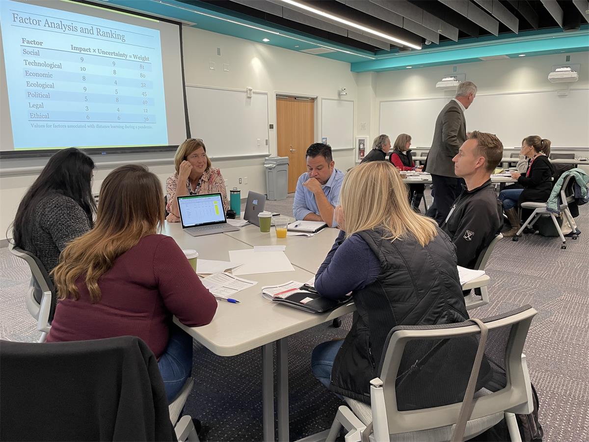Sessions focused on scenario forecasting, inter-cultural competence and diversity awareness and exploration of personal leadership strengths as well as the dangers of overusing them. The cohort also broke into four groups, each of which explored “what-if” scenarios regarding one of the following topics: HR excellence, the tuition model, rethinking school structure and operations, and potential in online learning.