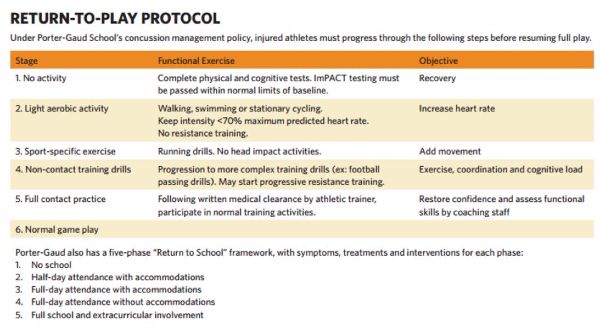 That’s where a program like Porter-Gaud’s could prove a best practice for other schools to emulate. Richins relied on resources such as the CDC’s HEADS UP initiative to help create the school’s concussion policy. She also developed specific protocols for coaches, teachers and parents to follow in the wake of an injury, as symptoms of a potential concussion might occur some time after the actual injury is sustained.