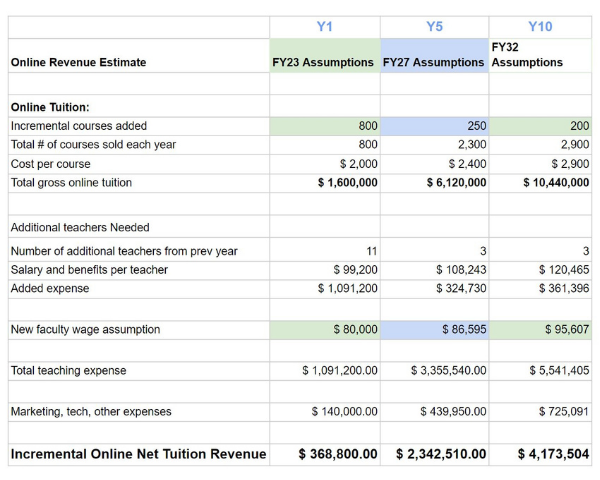 To demonstrate the financial scalability of this model, the presenters ran a 10-year budget projection. For years one, five and 10, they estimate a price of $2,000 per course. “We would have room to increase compensation, invest in the necessary technology to maintain the program and still add to the bottom line,” Piechota concluded. If a student took five courses a year for $10,000 total, for example, that would still be well below what a typical year of tuition at an independent school would cost – a draw for prospective parents who otherwise would not have considered an independent school education.