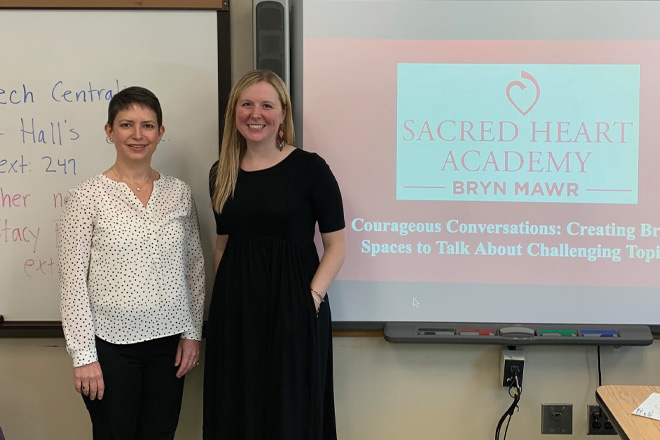 The “Courageous Conversations” program has also helped school leaders think about the dynamic between SHA and the Pennsylvania suburbs in which the school is located. “Working with students on dialogue training gives them the ability to navigate differences, toward greater understanding instead of [through] conflict and division,” said Cryor. “If our Sacred Heart graduates go into the world with these skills, I feel we have fulfilled our mission.”