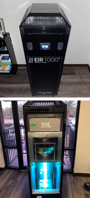 We prioritized purchasing the combination UV/HEPA air purifier in our budget because they provided active 24/7 purification of the air and had the capacity to complete six air exchanges per hour in an 11,000 cubic foot cafeteria and more than 10 air exchanges per hour in our 3,600 cubic foot nurse’s testing clinic. The units came with a small monthly service fee ($250) that covers all maintenance: filter and bulb replacement, 24/7 phone/Zoom technical support, and onsite repair if necessary. We have been very pleased with the equipment from FinsenTech.